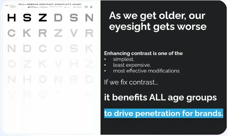 Mobil artık perakendenin ana giriş noktası ve kullanıcılar küçük ekranlarda hızlı, dikkati dağınık bir şekilde kaydırarak ürünlere çok kısa sürelerle bakıyor. Bu koşullarda küçük yazılar ve düşük kontrastlı detaylar fark edilmiyor. Üstelik yaş ortalaması arttıkça gözün küçük detaylara odaklanma yetisi de azalıyor; özellikle 40 yaş üzeri kullanıcılar için mobil ekranda okunabilirlik ciddi biçimde düşüyor. Sonuç olarak markalar, satın alma anında hedef kitlenin önemli bir kısmının okuyamadığı görseller ve metinler üretiyor. Mobil dönüşümün kritik olduğu bu ortamda buna uyum sağlamamak, markalar için ciddi bir dezavantaj yaratıyor.